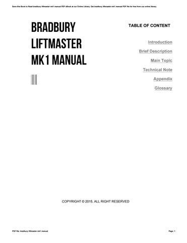 Download EPUB BRADBURY LIFTMASTER MK1 MANUAL Free PDF PDF